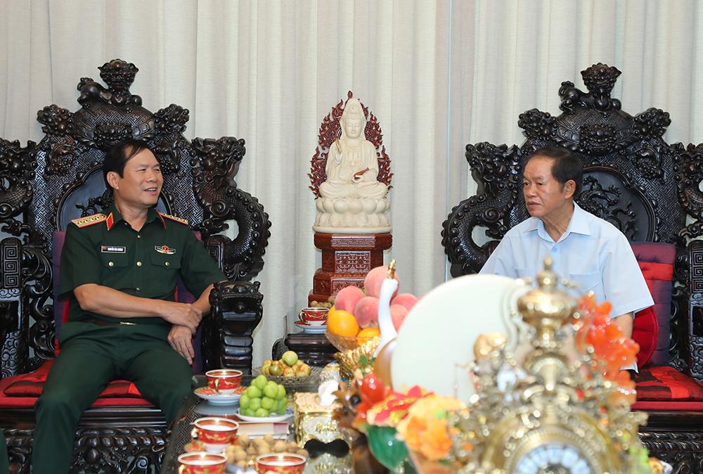 Đại tướng Nguyễn Tân Cương và đoàn công tác bày tỏ lòng biết ơn vô hạn, tri ân những cống hiến, đóng góp to lớn của các đồng chí nguyên lãnh đạo Đảng, Nhà nước, Quân đội đối với sự nghiệp cách mạng của Đảng, dân tộc và sự nghiệp xây dựng Quân đội, củng cố quốc phòng. Dưới sự lãnh đạo tuyệt đối, trực tiếp về mọi mặt của Đảng, QĐND Việt Nam đã vượt qua muôn vàn khó khăn, gian khổ, không ngừng trưởng thành, lớn mạnh, lập nhiều chiến công hiển hách, hoàn thành thắng lợi mọi nhiệm vụ mà Đảng, Nhà nước, Nhân dân giao phó; xứng đáng là Quân đội anh hùng của dân tộc Việt Nam anh hùng. Để có được thành tích vẻ vang đó là nhờ có công sức, trí tuệ và sự đóng góp to lớn của các đồng chí nguyên lãnh đạo Đảng, Nhà nước, Quân đội.