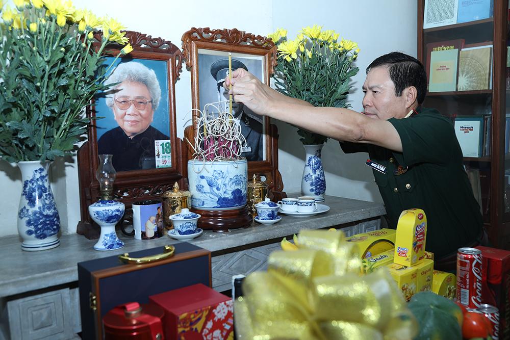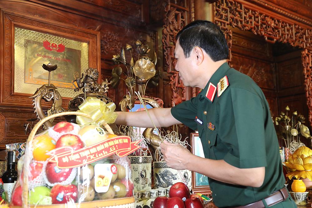 Đại tướng Nguyễn Tân Cương dâng hương tưởng nhớ Thượng tướng Nguyễn Khắc Nghiên.