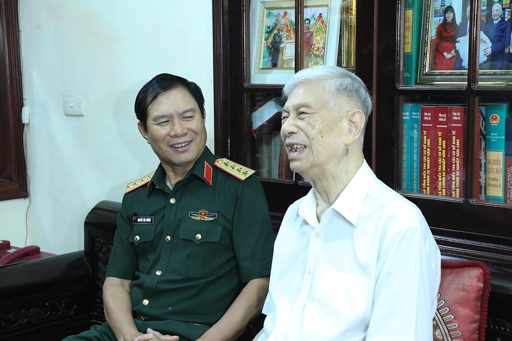 Đại tướng Nguyễn Tân Cương thăm hỏi Đại tướng Ngô Xuân Lịch.