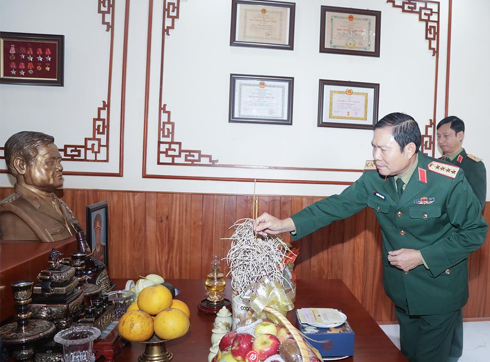Trong bầu không khí trang nghiêm, Đại tướng Nguyễn Tân Cương và các đại biểu thành kính dâng hoa, dâng hương bày tỏ lòng biết ơn sâu sắc trước những cống hiến, đóng góp to lớn của các đồng chí nguyên lãnh đạo Đảng, Nhà nước, Quân đội đối với sự nghiệp cách mạng của Đảng, dân tộc và sự nghiệp xây dựng Quân đội, củng cố quốc phòng.