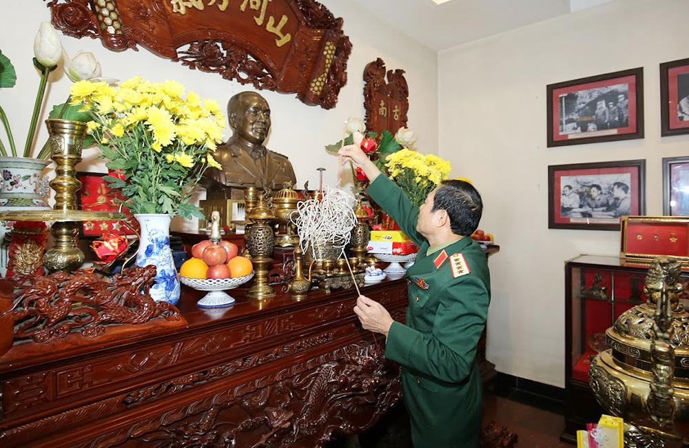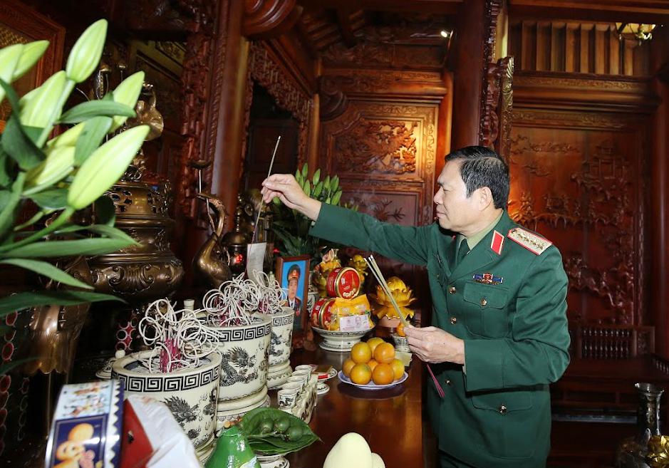 Đại tướng Nguyễn Tân Cương dâng hương tri ân Đại tướng Phùng Quang Thanh.