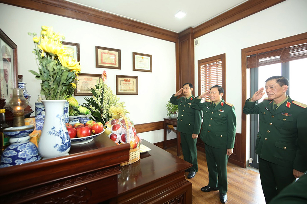 Dịp này, Đại tướng Nguyễn Tân Cương và các đại biểu đã thành kính dâng hương, dâng hoa tri ân tưởng nhớ nguyên Tổng Bí thư Lê Khả Phiêu; nguyên Chủ tịch nước Lê Đức Anh; các đồng chí nguyên Ủy viên Bộ Chính trị, nguyên Bộ trưởng Bộ Quốc phòng: Đại tướng Võ Nguyên Giáp, Đại tướng Văn Tiến Dũng, Đại tướng Đoàn Khuê, Đại tướng Phùng Quang Thanh; Đại tướng Chu Huy Mân, nguyên Ủy viên Bộ Chính trị, nguyên Chủ nhiệm Tổng cục Chính trị QĐND Việt Nam; các đồng chí nguyên Tổng Tham mưu trưởng QĐND Việt Nam, nguyên Thứ trưởng Bộ Quốc phòng: Đại tướng Lê Trọng Tấn, Đại tướng Hoàng Văn Thái, Thượng tướng Nguyễn Khắc Nghiên và Trung tướng Nguyễn Hải Bằng, nguyên Phó Giám đốc Học viện Quốc phòng.
