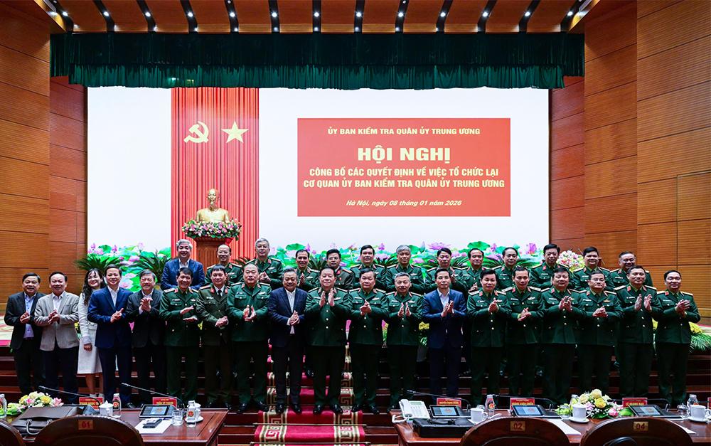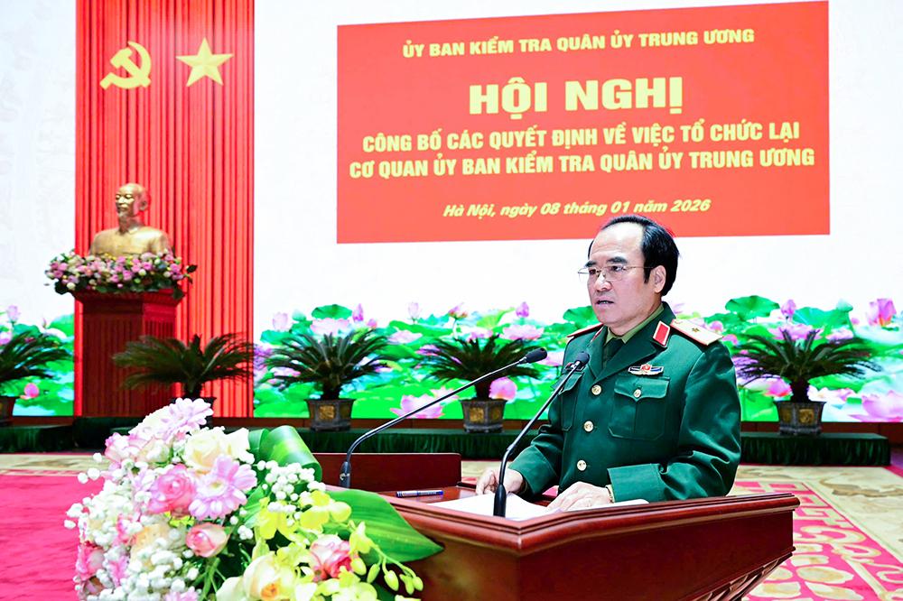 (Bqp.vn) - Chiều 8/1, tại Hà Nội, đã diễn ra Hội nghị công bố các Quyết định tổ chức lại Cơ quan Ủy ban Kiểm tra Quân ủy Trung ương. Đại tướng Nguyễn Trọng Nghĩa, Ủy viên Bộ Chính trị, Bí thư Trung ương Đảng, Ủy viên Thường vụ Quân ủy Trung ương, Chủ nhiệm Tổng cục Chính trị QĐND Việt Nam, Chủ nhiệm Ủy ban Kiểm tra Quân ủy Trung ương chủ trì hội nghị.