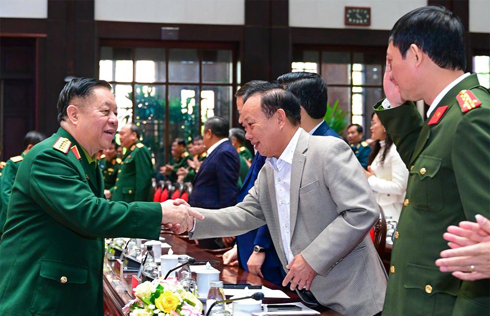 Đại tướng Nguyễn Trọng Nghĩa với các đại biểu tham dự hội nghị.