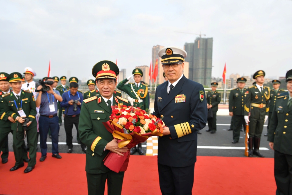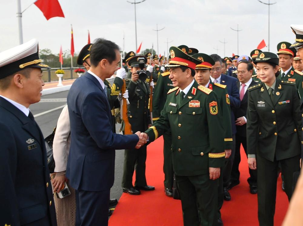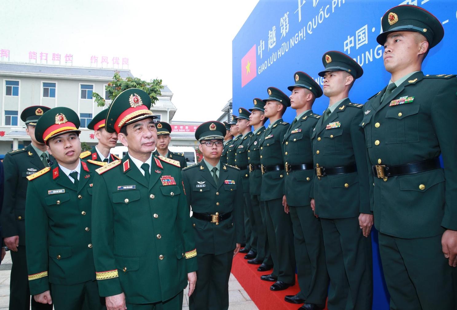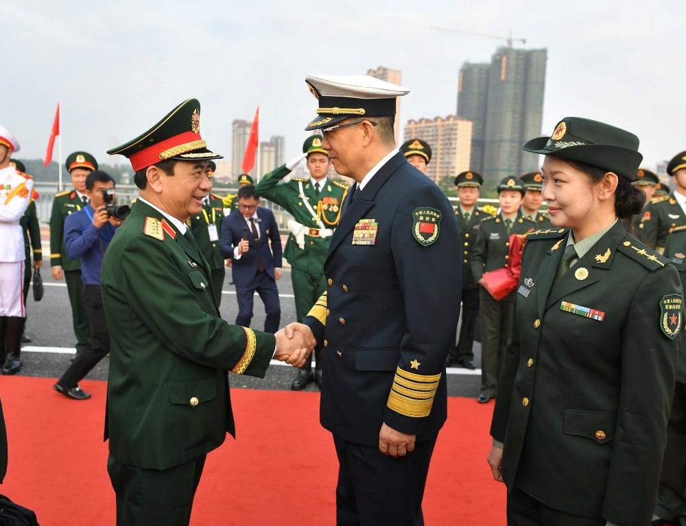 Ngay sau đó, Lễ đón chính thức Đoàn đại biểu cấp cao Bộ Quốc phòng Việt Nam được tổ chức trọng thể tại Cửa khẩu quốc tế Đông Hưng (Trung Quốc). Thượng tướng Đổng Quân, Bộ trưởng Bộ Quốc phòng Trung Quốc chủ trì đón, nồng nhiệt chào mừng Đại tướng Phan Văn Giang cùng các thành viên trong đoàn.