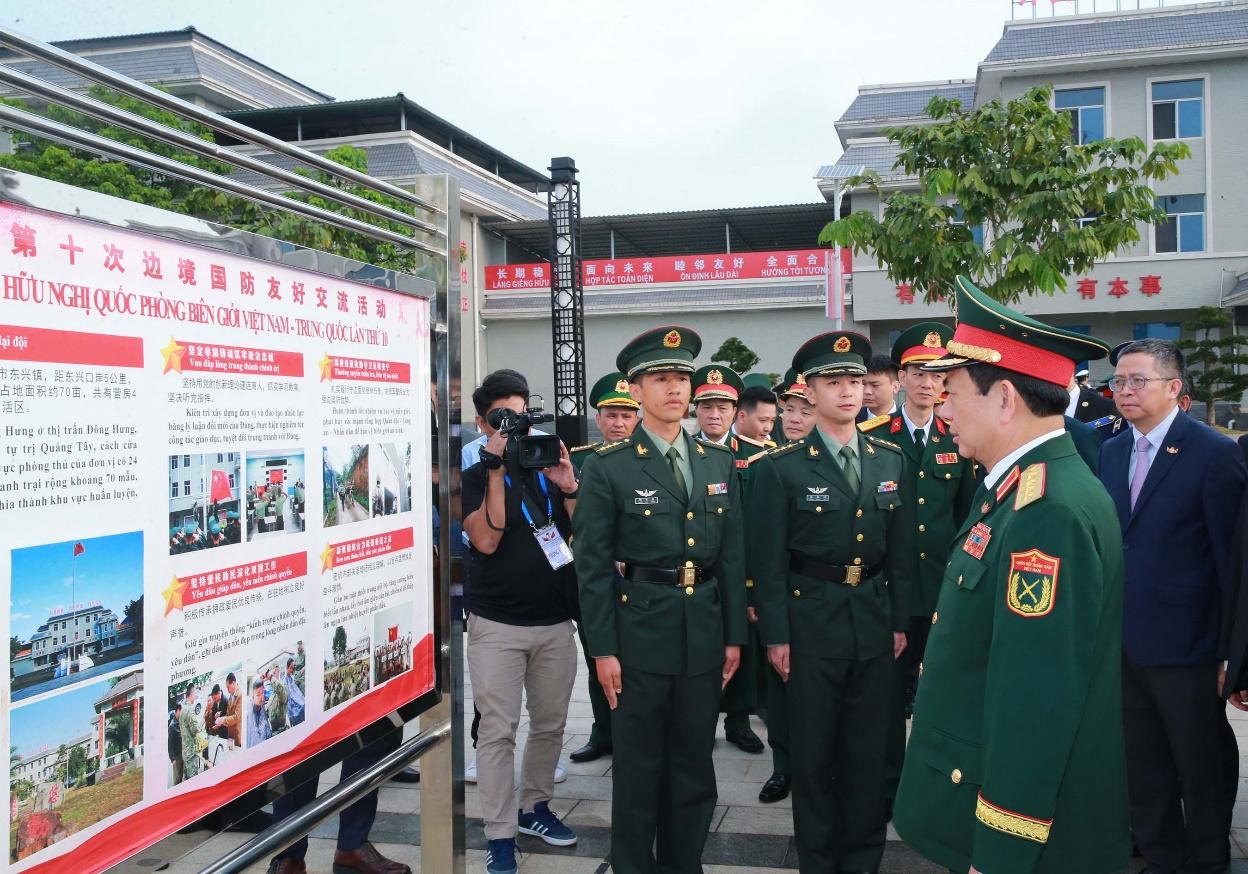 Tiếp đó, hai Bộ trưởng cùng đoàn đại biểu hai nước đến thăm Đại đội Biên phòng Đông Hưng. Tại đây, hai Bộ trưởng nghe báo cáo về chức năng, nhiệm vụ của đơn vị; tham quan cơ sở vật chất; tham gia trồng cây hữu nghị và xem thi đấu giao hữu cầu lông giữa quân đội hai nước. Nhân dịp này, Bộ Quốc phòng Việt Nam đã trao tặng quà cán bộ, chiến sĩ đơn vị.