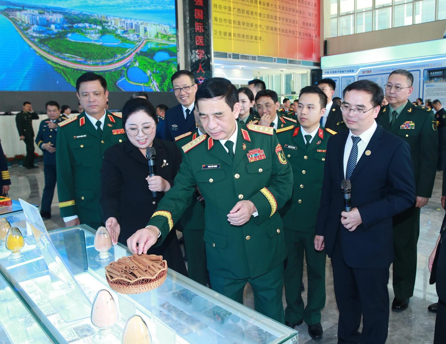Đại tướng Phan Văn Giang và Thượng tướng Đổng Quân cùng đoàn đại biểu hai nước tham quan Khu thí điểm mở y học quốc tế Phòng Thành Cảng.