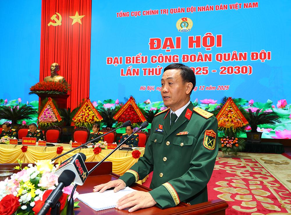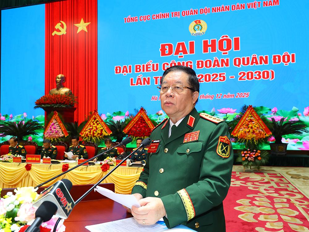 Phát biểu chỉ đạo đại hội, thay mặt Quân ủy Trung ương, Bộ Quốc phòng, Đại tướng Phan Văn Giang khẳng định, Công đoàn Quốc phòng là tổ chức có lịch sử hình thành sớm, gắn liền với yêu cầu xây dựng và phát triển Quân đội nhân dân Việt Nam ngay từ những năm đầu kháng chiến. Trải qua hơn 75 năm xây dựng và trưởng thành, các thế hệ “người lính thợ” luôn nêu cao tinh thần tự lực, tự cường, dám nghĩ, dám làm, góp phần quan trọng vào sự nghiệp xây dựng Quân đội và củng cố nền quốc phòng toàn dân. Đại tướng Phan Văn Giang nhấn mạnh, những năm qua, phong trào công nhân và hoạt động Công đoàn trong Quân đội tiếp tục phát triển tích cực, toàn diện. Công đoàn các cấp đã đẩy mạnh giáo dục chính trị, tuyên truyền pháp luật; triển khai hiệu quả các phong trào thi đua, nhất là phong trào “Lao động giỏi - Lao động sáng tạo”, thúc đẩy nhiều công trình, sáng kiến, cải tiến kỹ thuật được ứng dụng vào thực tiễn, mang lại hiệu quả kinh tế - kỹ thuật thiết thực, làm lợi cho đơn vị hàng tỷ đồng mỗi năm. Cùng với đó, tổ chức Công đoàn Quân đội thực hiện tốt chức năng đại diện, chăm lo, bảo vệ quyền lợi hợp pháp của người lao động; chủ động đối thoại, cải thiện điều kiện làm việc; triển khai sâu rộng các chương trình “Mái ấm Công đoàn”, “Tết sum vầy”, “Bữa cơm Công đoàn”, các hoạt động phúc lợi, an sinh xã hội, đền ơn đáp nghĩa…, qua đó xây dựng môi trường làm việc nhân văn, đoàn kết, gắn bó.