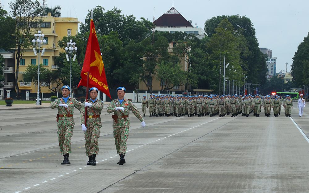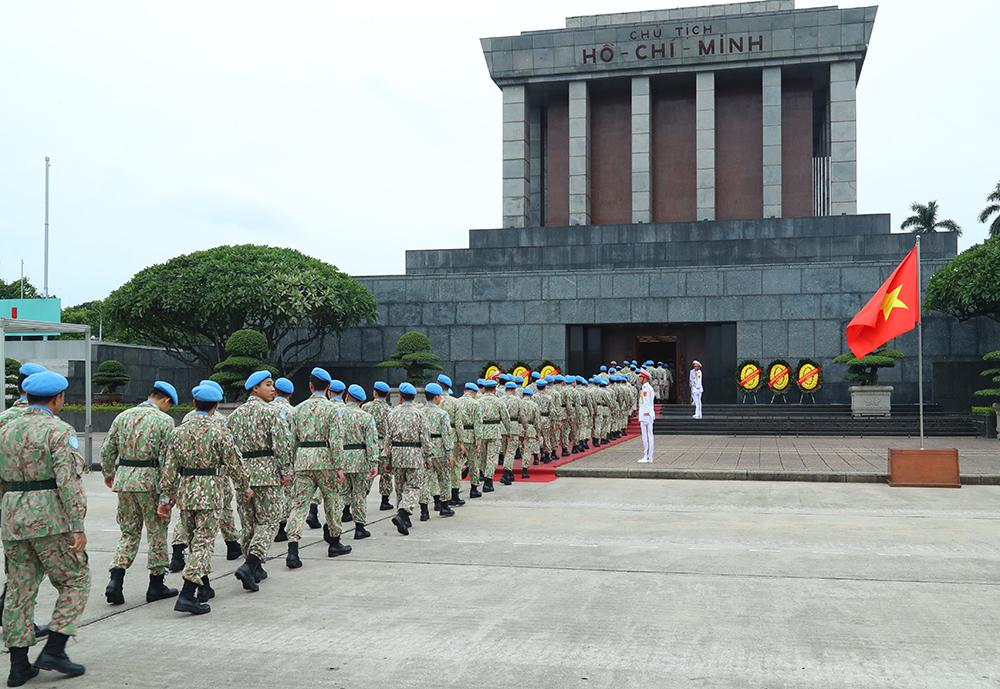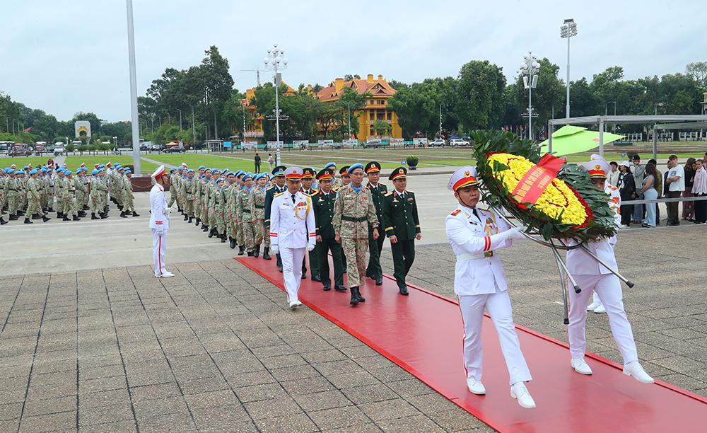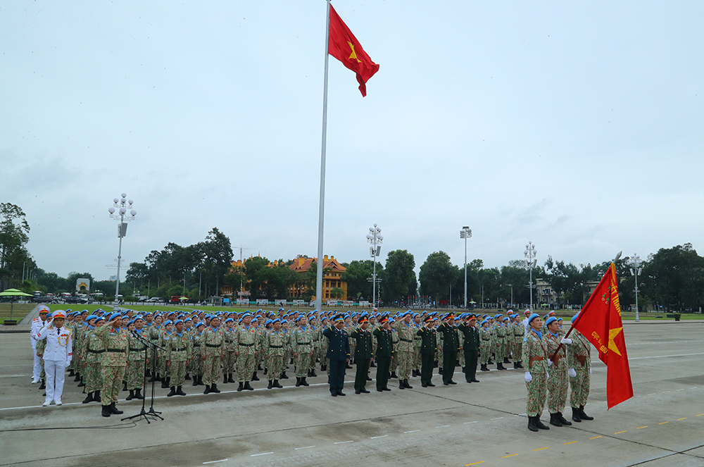 (Bqp.vn) - Sáng 23/9, tại Lăng Chủ tịch Hồ Chí Minh, Đội Công binh số 3 và Bệnh viện dã chiến cấp 2 số 6 (BVDC2.6) tổ chức Lễ báo công dâng Bác sau khi hoàn thành nhiệm vụ gìn giữ hòa bình (GGHB) Liên hợp quốc tại Phái bộ GGHB Liên hợp quốc khu vực Abyei (Phái bộ UNISFA) và Phái bộ GGHB Liên hợp quốc tại Nam Xu-đăng (Phái bộ UNMISS). Thiếu tướng Phạm Mạnh Thắng, Cục trưởng Cục GGHB Việt Nam chủ trì buổi lễ.