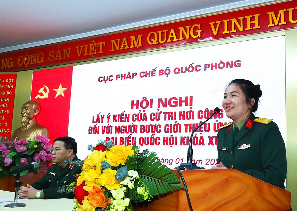 Cử tri Cục Pháp chế Bộ Quốc phòng tham gia ý kiến tại hội nghị.