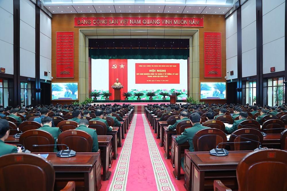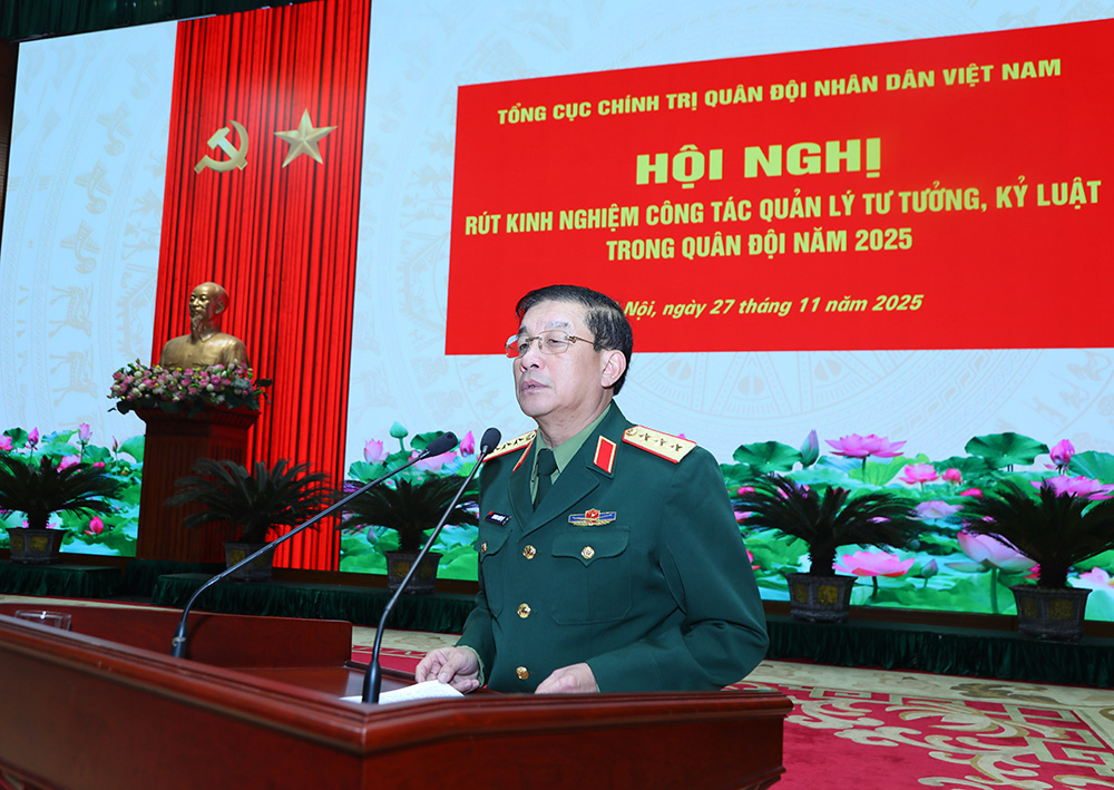 (Bqp.vn) - Sáng 27/11, tại Hà Nội, Tổng cục Chính trị QĐND Việt Nam tổ chức Hội nghị rút kinh nghiệm công tác quản lý tư tưởng, kỷ luật trong Quân đội năm 2025. Thượng tướng Trương Thiên Tô, Phó Chủ nhiệm Tổng cục Chính trị QĐND Việt Nam chủ trì hội nghị. Dự hội nghị có đại biểu lãnh đạo, chỉ huy các cơ quan, đơn vị trực thuộc Bộ Quốc phòng, Bộ Tổng Tham mưu, Tổng cục Chính trị.