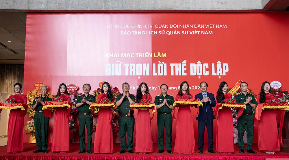 Phát biểu khai mạc triển lãm, Đại tá Lê Vũ Huy, Giám đốc Bảo tàng Lịch sử quân sự Việt Nam cho biết, Triển lãm “Giữ trọn lời thề độc lập” giới thiệu hơn 300 hình ảnh, tài liệu, hiện vật tái hiện sinh động chặng đường đấu tranh, hy sinh, gian khổ nhưng vô cùng vẻ vang của dân tộc ta trong hành trình bảo vệ nền độc lập, giữ vững chủ quyền, xây dựng và bảo vệ Tổ quốc. Các hình ảnh, hiện vật, tài liệu giới thiệu tại triển lãm là những tư liệu quý, một số lần đầu được trưng bày, giới thiệu, tiêu biểu như: Bản Tuyên ngôn độc lập của Chủ tịch Hồ Chí Minh ngày 02/9/1945; bộ sưu tập các tờ báo trong giai đoạn cao trào cách mạng 1941 - 1945; phục chế Ấn “Hoàng đế chi bảo” - biểu tượng quyền lực tối cao của triều đình phong kiến, trở thành chứng tích của thời khắc chuyển giao lịch sử; bộ sưu tập giấy bạc “Cụ Hồ” - phương tiện thanh toán do Chính phủ Việt Nam Dân chủ Cộng hòa phát hành, thể hiện quyền làm chủ về kinh tế, tài chính của một quốc gia độc lập; phục chế Cột mốc A Pa Chải - biểu tượng thiêng liêng của chủ quyền, khẳng định quyết tâm bảo vệ toàn vẹn lãnh thổ. Đặc biệt, triển lãm lần này đã ứng dụng công nghệ thực tế ảo tăng cường (AR), trí tuệ nhân tạo (AI), qua đó góp phần tái hiện lịch sử sinh động, tăng cường tương tác cho khách tham quan nghiên cứu, tìm hiểu và trải nghiệm.