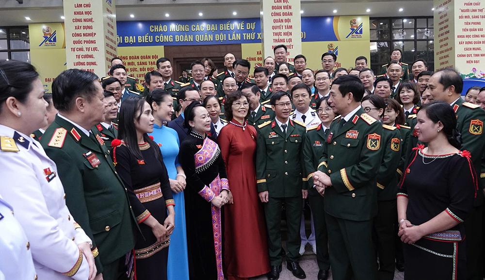 Đại tướng Phan Văn Giang trao đổi với các đại biểu dự Đại hội đại biểu Công đoàn Quân đội lần thứ XI.