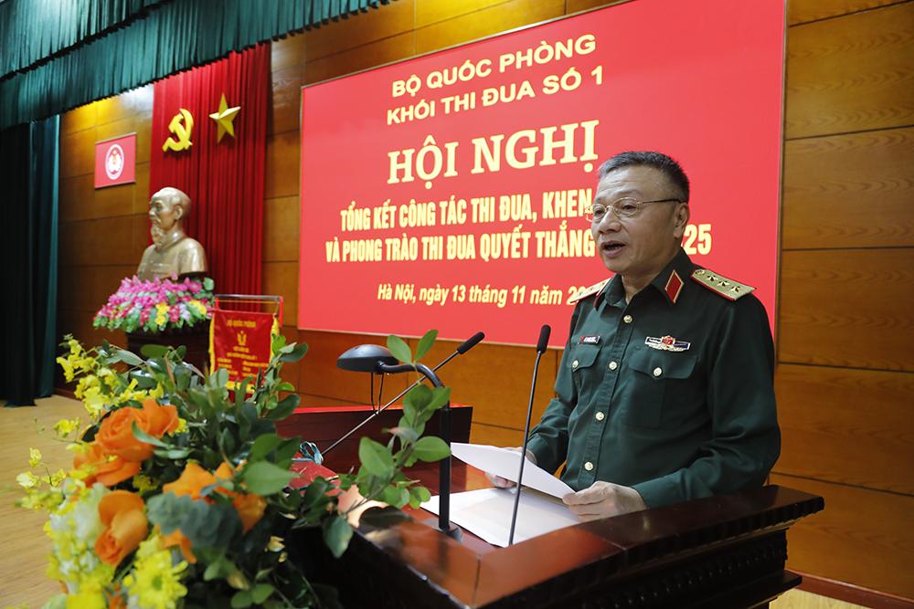 (Bqp.vn) - Chiều 13/11, tại Hà Nội, Khối thi đua số 1 Bộ Quốc phòng tổ chức Hội nghị tổng kết công tác thi đua, khen thưởng và Phong trào Thi đua Quyết thắng năm 2025. Thượng tướng Lê Quang Minh, Phó Chủ nhiệm Tổng cục Chính trị QĐND Việt Nam, Bí thư Đảng ủy Cơ quan Tổng cục Chính trị, Khối trưởng Khối thi đua số 1 Bộ Quốc phòng chủ trì hội nghị.