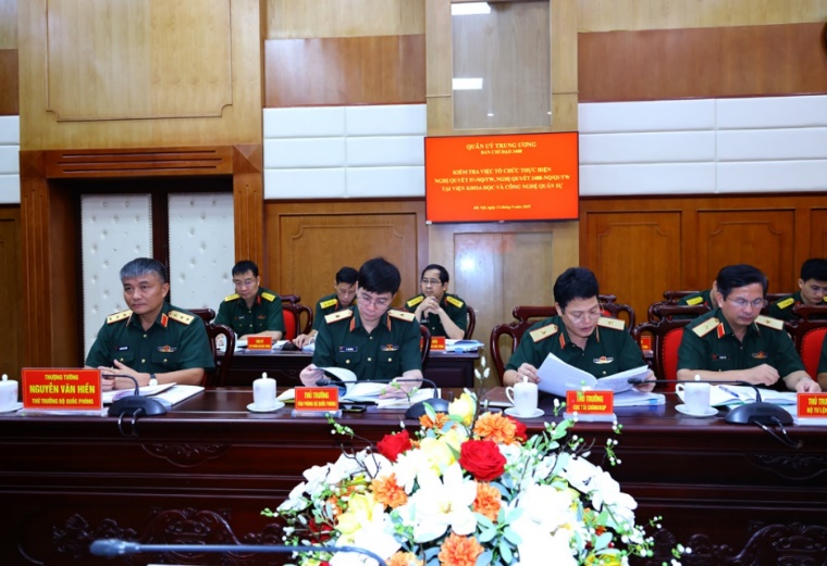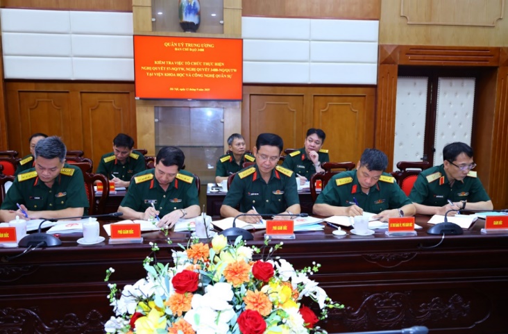 Tại buổi kiểm tra, Đại tá Dương Nhật Dân, Bí thư Đảng ủy, Phó Giám đốc Viện Khoa học và Công nghệ quân sự đã báo cáo kết quả triển khai Nghị quyết số 57-NQ/TW của Bộ Chính trị, Nghị quyết số 3488-NQ/QUTW của Quân ủy Trung ương và các nghị quyết, kế hoạch liên quan trong thời gian qua. Nổi bật là Đảng ủy Viện đã quán triệt nghiêm túc, kịp thời các nghị quyết, chỉ thị, kết luận của cấp trên; thành lập Ban Chỉ đạo, ban hành nghị quyết, kế hoạch triển khai các nhiệm vụ đột phá về phát triển KHCN, ĐMST và CĐS. Công tác tuyên truyền, giáo dục được thực hiện rộng khắp, gắn với nhiệm vụ chính trị của Viện; 100% cơ quan, đơn vị trực thuộc đã xây dựng kế hoạch hưởng ứng phong trào “Bình dân học vụ số”. Viện đã chủ động tham gia rà soát những tồn tại, vướng mắc, đề xuất giải pháp tháo gỡ, đồng thời định hướng các nhóm nghiên cứu chuyên sâu trong những lĩnh vực trọng điểm như công nghệ lượng tử, công nghệ sinh học, trí tuệ nhân tạo, nghiên cứu định vị dẫn đường… Nhiều kết quả nổi bật đã được ghi nhận, trong đó có ứng dụng công nghệ lượng tử trong nhận dạng hình ảnh với độ chính xác tới 99%; một số sản phẩm mới đã được đưa vào phục vụ huấn luyện, SSCĐ…