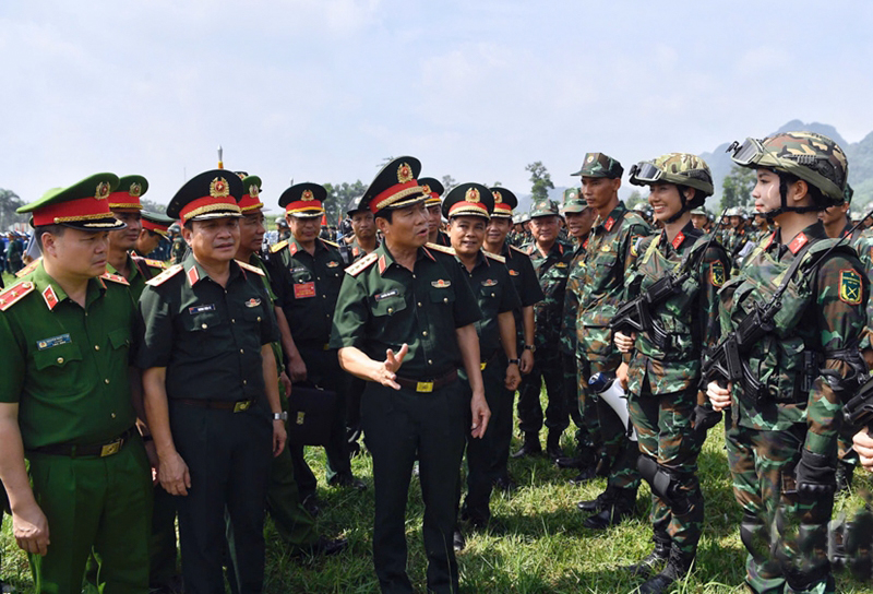 Đại tướng Nguyễn Tân Cương, Ủy viên Trung ương Đảng, Ủy viên Thường vụ Quân ủy Trung ương, Tổng Tham mưu trưởng QĐND Việt Nam, Thứ trưởng Bộ Quốc phòng kiểm tra tổng hợp luyện các lực lượng tham gia nhiệm vụ A80, tháng 5/2025.