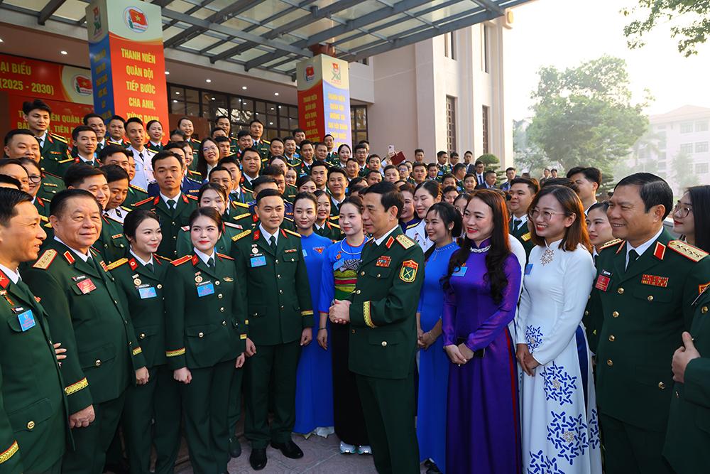 Đại tướng Phan Văn Giang trò chuyện cùng các đại biểu tham dự Đại hội Đoàn TNCS Hồ Chí Minh Quân đội lần thứ XI, tháng 12/2025. (ảnh: Đức Anh)