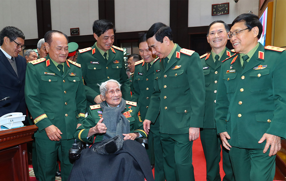 Dịp này, thay mặt Quân ủy Trung ương, Bộ Quốc phòng và cán bộ, chiến sĩ toàn quân, Đại tướng Phan Văn Giang gửi lời chúc sức khỏe, hạnh phúc, thêm niềm vui mới, thành công mới đến các đồng chí lãnh đạo, nguyên lãnh đạo Quân ủy Trung ương, Bộ Quốc phòng, các đồng chí tướng lĩnh, cán bộ cao cấp Quân đội qua các thời kỳ.