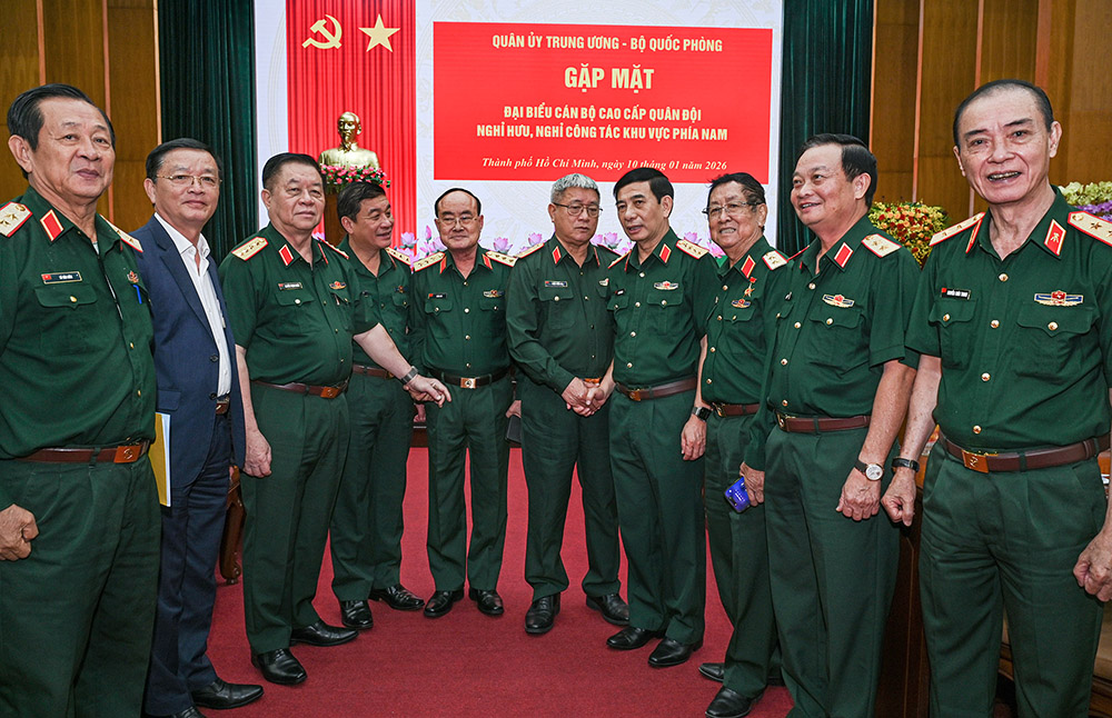 Nhân dịp này, Đại tướng Phan Văn Giang đã thông tin khái quát về tình hình thời sự thế giới, khu vực và trong nước; những kết quả nổi bật trong công tác quân sự, quốc phòng, xây dựng Đảng bộ Quân đội năm 2025; phương hướng, nhiệm vụ trọng tâm năm 2026. Đại tướng trân trọng đề nghị các đồng chí cán bộ cao cấp Quân đội đã nghỉ hưu, nghỉ công tác tiếp tục phát huy bản lĩnh, trí tuệ, kinh nghiệm và tâm huyết, quan tâm đóng góp ý kiến, chia sẻ những kinh nghiệm quý báu; là nguồn cổ vũ, động viên to lớn, sát cánh cùng Quân ủy Trung ương, lãnh đạo Bộ Quốc phòng, cấp ủy, chỉ huy các cơ quan, đơn vị trong toàn quân hoàn thành thắng lợi mọi nhiệm vụ, bảo vệ vững chắc Tổ quốc Việt Nam xã hội chủ nghĩa, góp phần đưa đất nước vững bước trong kỷ nguyên vươn mình của dân tộc, vì hòa bình, độc lập, dân chủ, giàu mạnh, tiến lên chủ nghĩa xã hội.