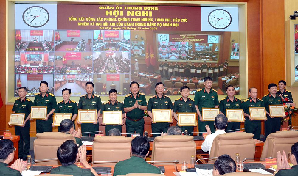 Tại hội nghị, lãnh đạo Bộ Quốc phòng đã trao Bằng khen của Bộ trưởng Bộ Quốc phòng tặng các tập thể, cá nhân có thành tích xuất sắc trong việc triển khai, tổ chức thực hiện công tác PCTNLPTC nhiệm kỳ Đại hội XIII của Đảng trong Đảng bộ Quân đội.