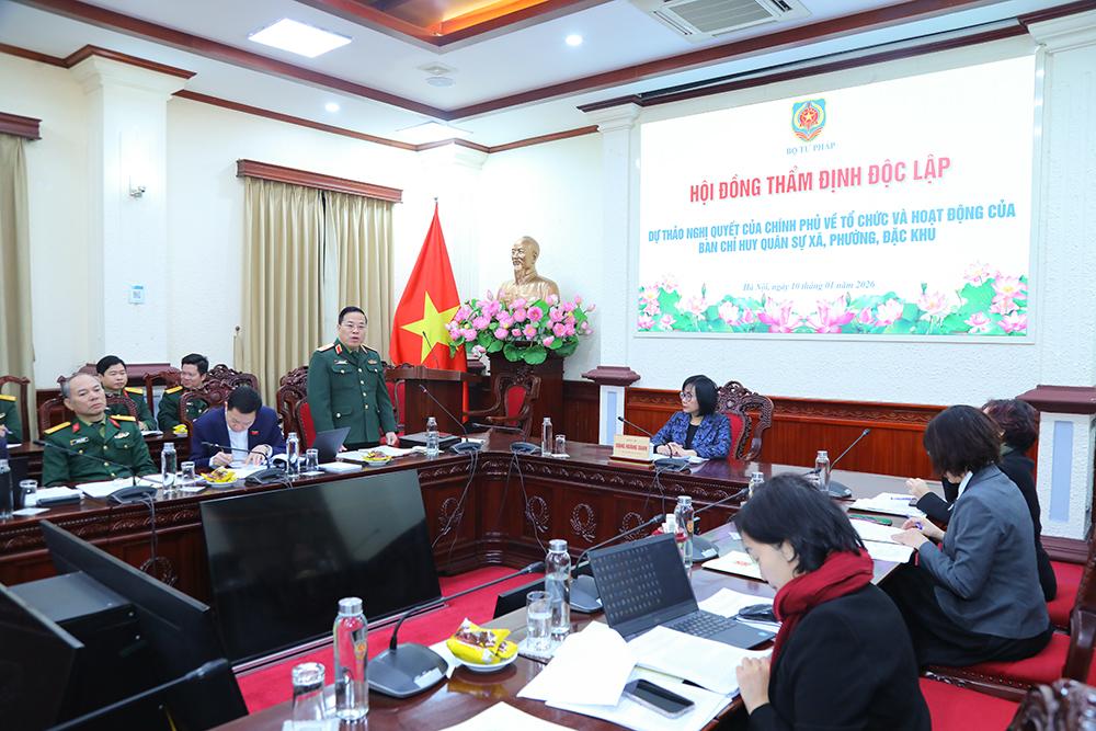 Thẩm định dự thảo Nghị quyết của Chính phủ về tổ chức và hoạt động của Ban Chỉ huy quân sự xã, phường, đặc khu