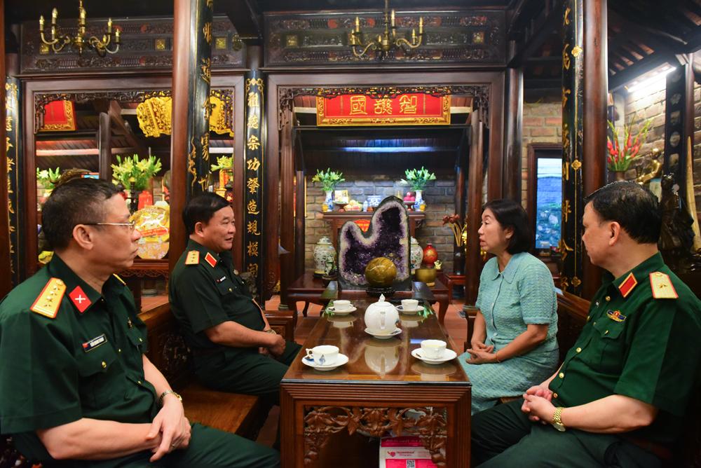 Đại diện gia đình tiếp đoàn là bà Đặng Thị Minh Ngọc, phu nhân Thượng tướng Nguyễn Chí Vịnh. Thượng tướng Hoàng Xuân Chiến ân cần thăm hỏi, thông tin khái quát về công tác quân sự, quốc phòng và những hoạt động kỷ niệm 80 năm Quốc khánh đang được tổ chức rộng khắp trong toàn quân, toàn quốc.