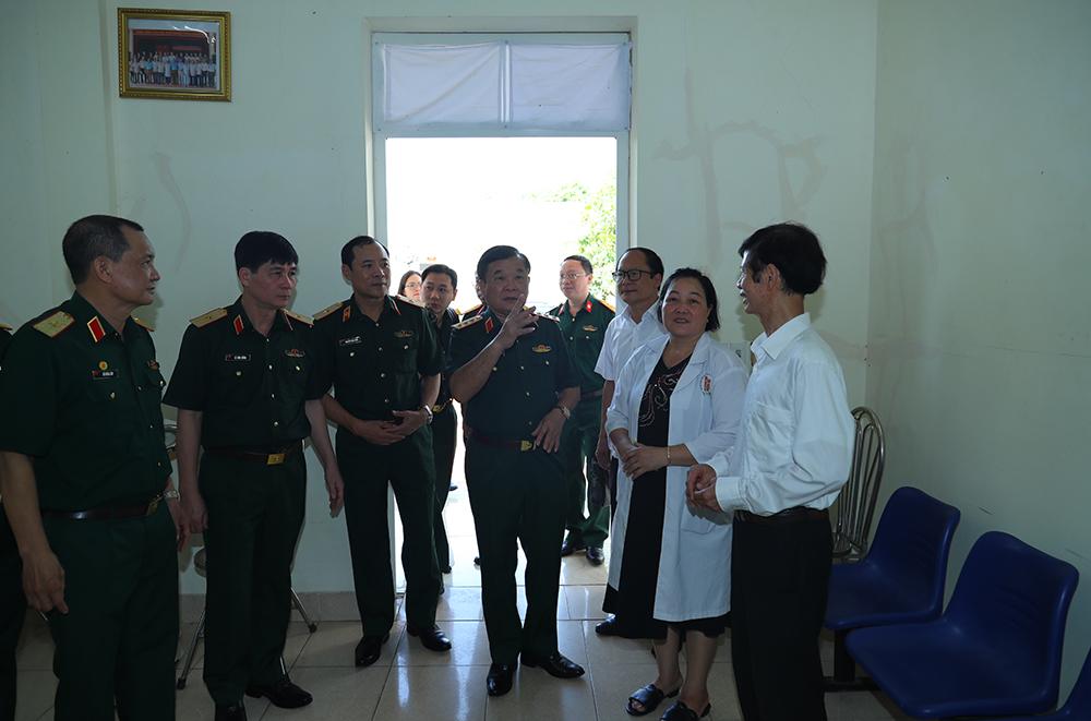 Thượng tướng Hoàng Xuân Chiến tham quan nơi ăn, ở, điều trị cho các nạn nhân chất độc da cam/đi-ô-xin tại Trung tâm.