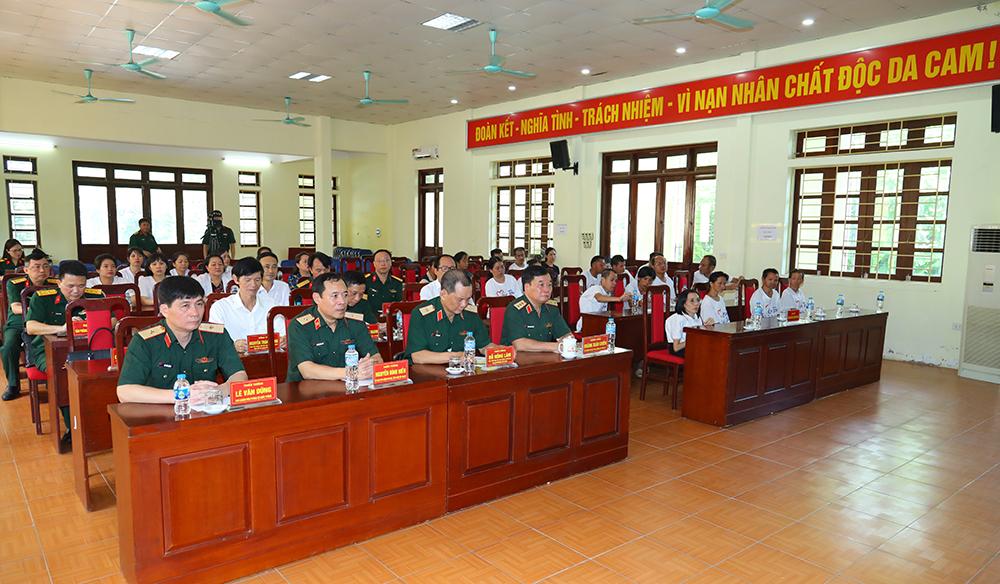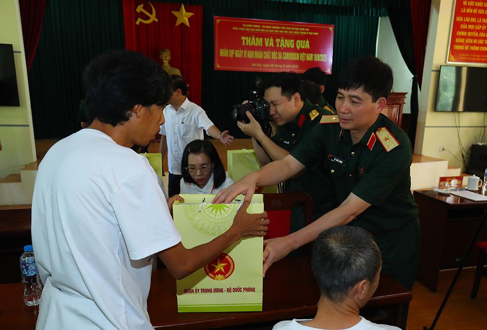 Thượng tướng Hoàng Xuân Chiến và các đại biểu trao quà tặng các nạn nhân chất độc da cam/đi-ô-xin.