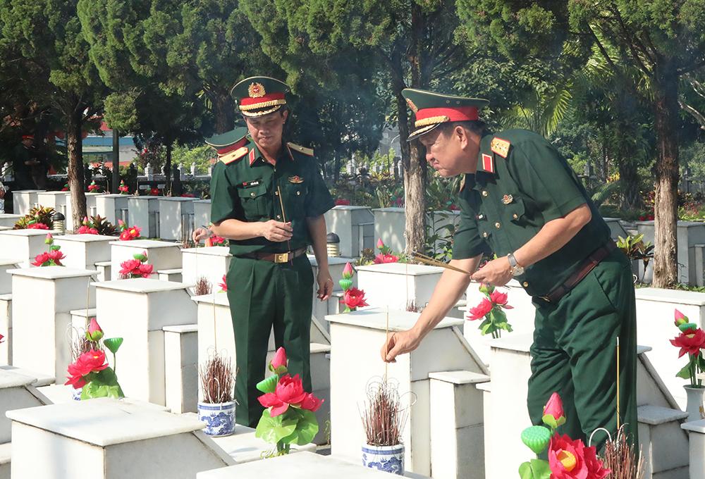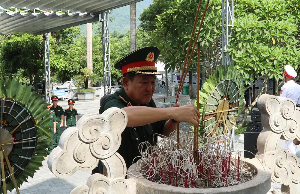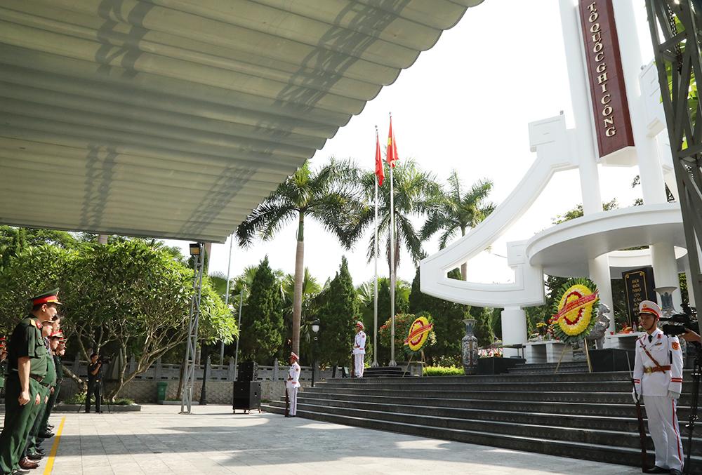 Trong không gian tĩnh lặng, thành kính, Thượng tướng Võ Minh Lương cùng các đại biểu đã kính cẩn dâng hương, dâng hoa tưởng niệm và tri ân sâu sắc công lao to lớn của những người con ưu tú của dân tộc đã anh dũng hy sinh vì độc lập, tự do của dân tộc, vì hạnh phúc của Nhân dân.