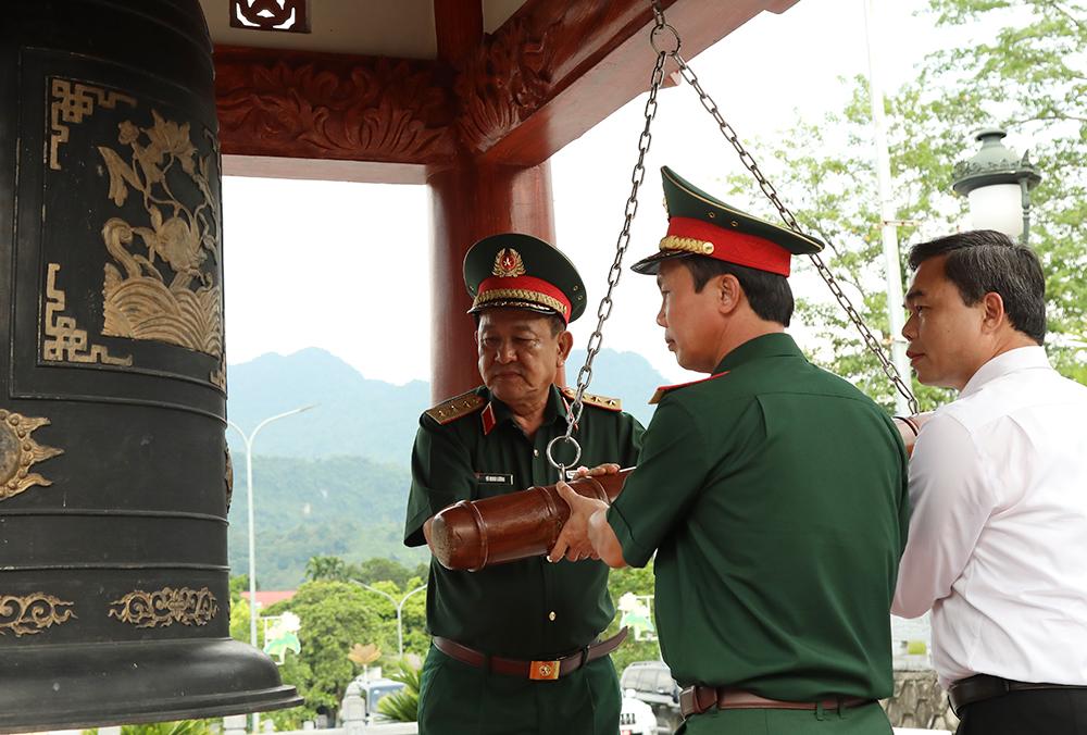 Thượng tướng Võ Minh Lương cùng các đại biểu thỉnh chuông tại Nghĩa trang Liệt sĩ quốc gia Vị Xuyên.