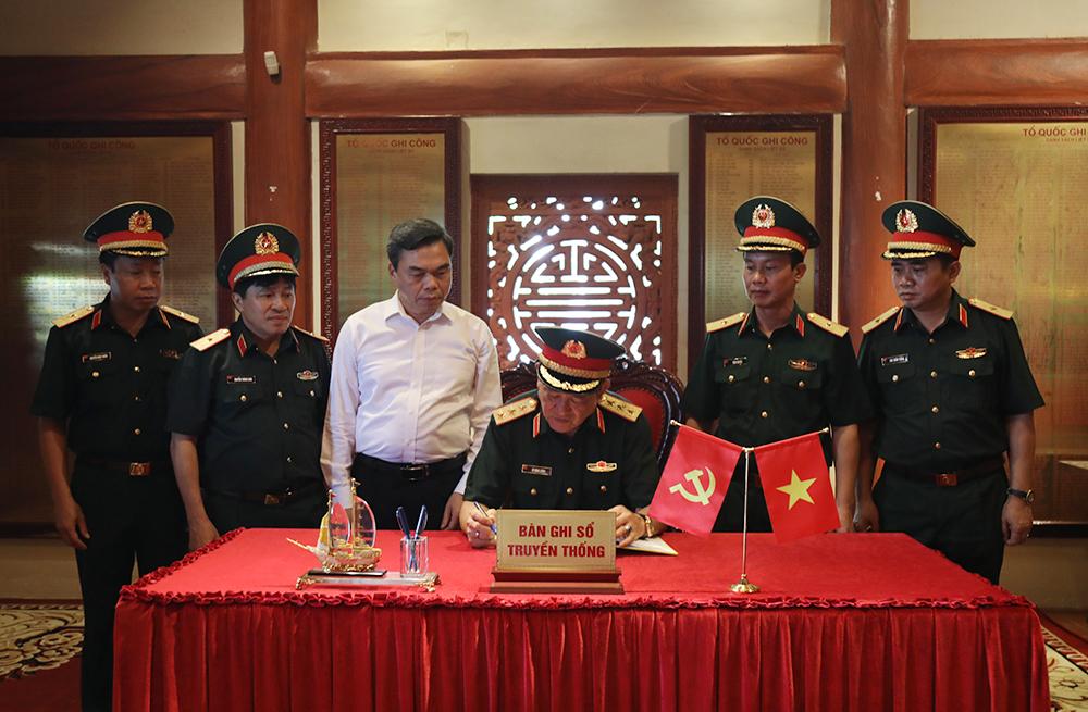 Thượng tướng Võ Minh Lương ghi cảm tưởng trong Sổ Truyền thống Nghĩa trang Liệt sĩ quốc gia Vị Xuyên.