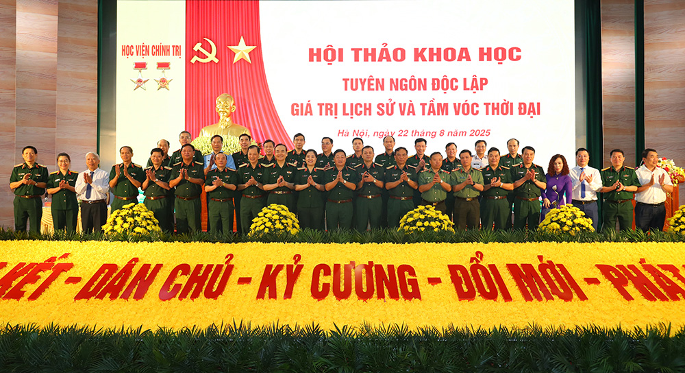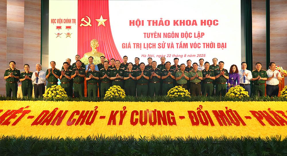 (Bqp.vn) - Sáng 22/8, Học viện Chính trị tổ chức Hội thảo khoa học “Tuyên ngôn Độc lập - Giá trị lịch sử và tầm vóc thời đại”, nhân kỷ niệm 80 năm Cách mạng tháng Tám và Quốc khánh 2/9. Hội thảo là dịp để các nhà khoa học và cán bộ, giảng viên làm rõ ý nghĩa lịch sử, giá trị thời đại trường tồn của Bản Tuyên ngôn bất hủ trong dòng chảy lịch sử dân tộc, đồng thời làm rõ những giá trị thời đại sâu sắc còn nguyên vẹn sức sống đến hôm nay.