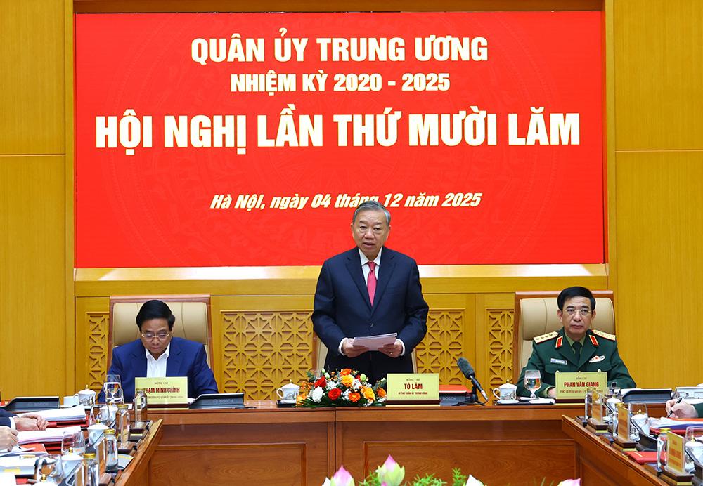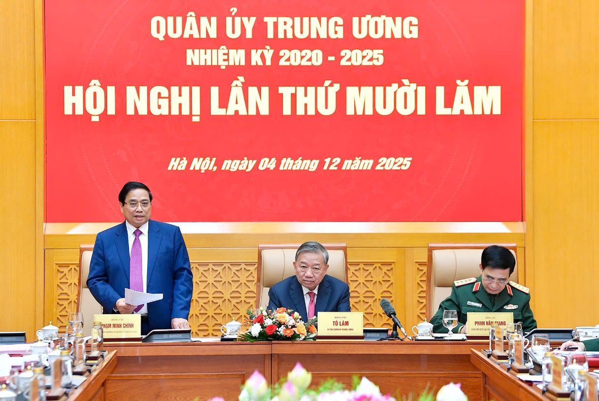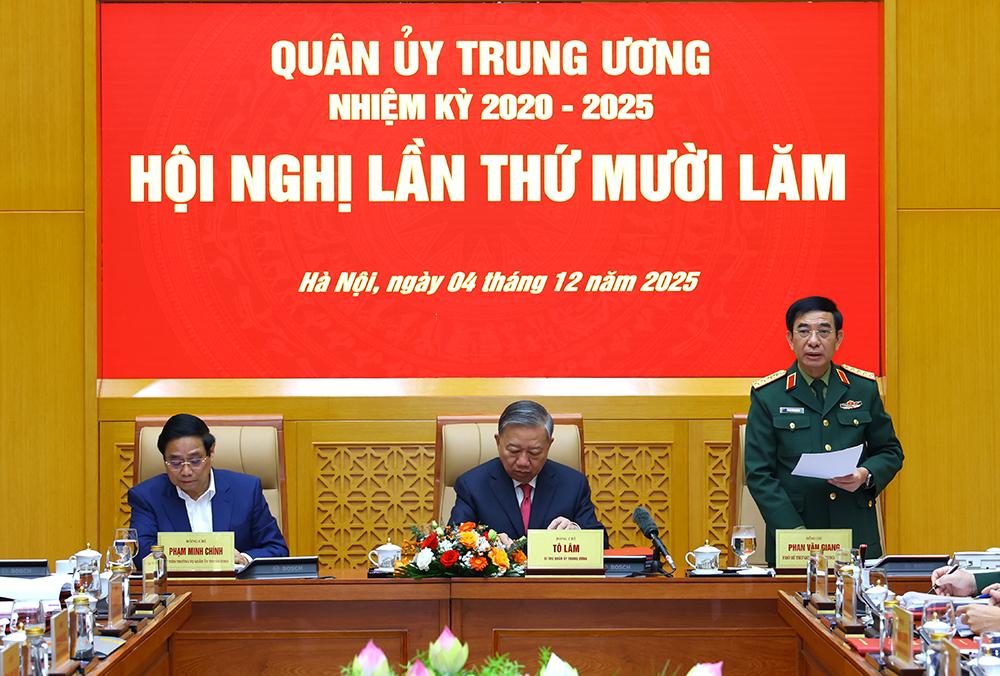 (Bqp.vn) - Sáng 04/12, tại Trụ sở Bộ Quốc phòng, Tổng Bí thư Tô Lâm, Bí thư Quân ủy Trung ương đã chủ trì Hội nghị Quân ủy Trung ương lần thứ Mười lăm. Tham dự hội nghị có đồng chí Phạm Minh Chính, Ủy viên Bộ Chính trị, Thủ tướng Chính phủ; đồng chí Trần Cẩm Tú, Ủy viên Bộ Chính trị, Thường trực Ban Bí thư.