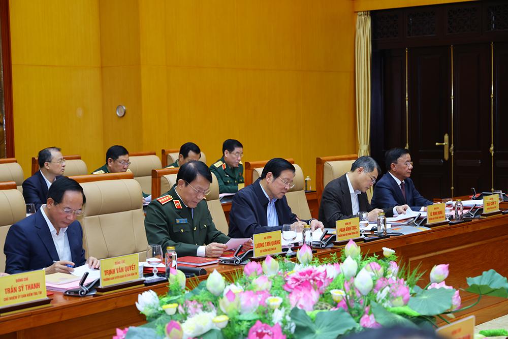 Tại hội nghị, Thủ tướng Chính phủ Phạm Minh Chính; Thường trực Ban Bí thư Trần Cẩm Tú và lãnh đạo các Ban Đảng Trung ương phát biểu làm rõ nhiều vấn đề, nội dung quan trọng làm cơ sở để Quân ủy Trung ương, Bộ Quốc phòng bổ sung, hoàn thiện dự thảo Nghị quyết lãnh đạo và các văn bản trình Hội nghị.
