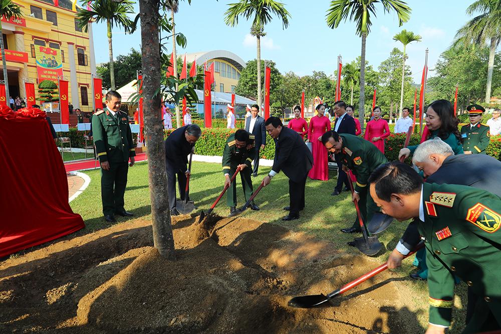 Tổng Bí thư Tô Lâm và các đại biểu trồng cây lưu niệm trong khuôn viên Bộ Tư lệnh Quân khu 1.