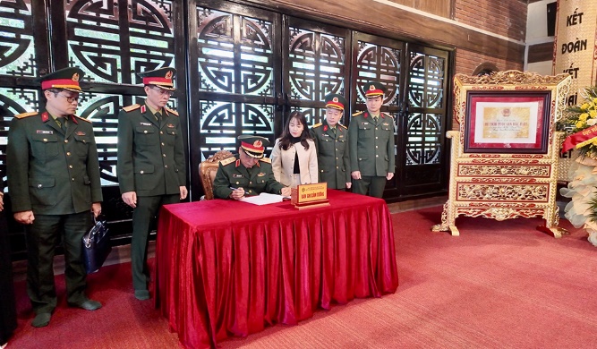 Trung tướng Trần Minh Đức ghi lưu bút tại Nhà tưởng niệm Chủ tịch Hồ Chí Minh.