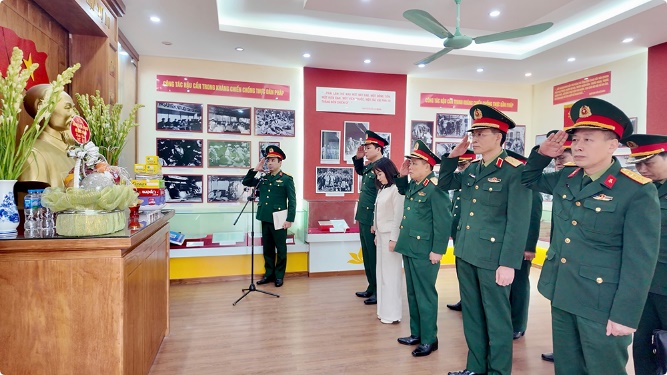 Trung tướng Trần Minh Đức cùng đoàn công tác dâng hương, dâng hoa tại Nhà lưu niệm Tổng cục Cung cấp thuộc Khu di tích lịch sử nơi thành lập Tổng cục Cung cấp.