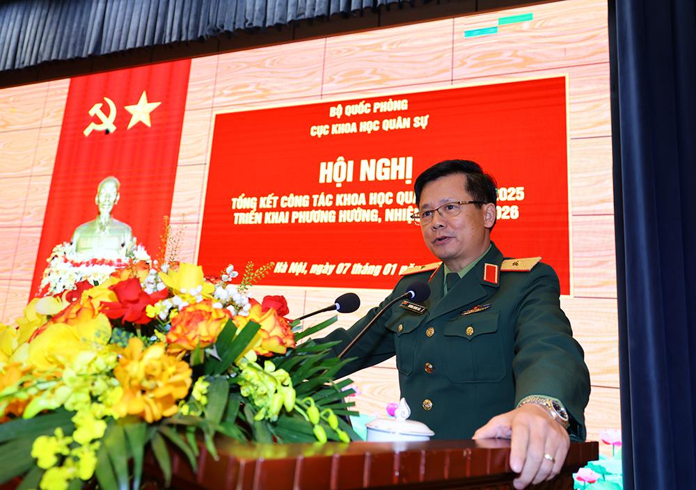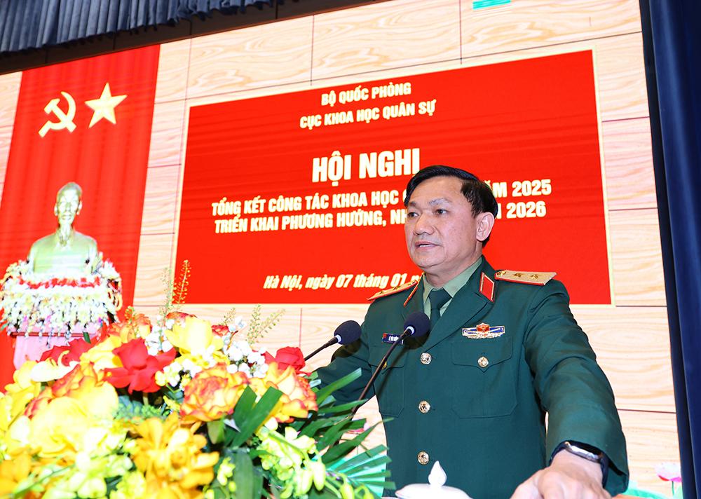 (Bqp.vn) - Chiều 7/1, tại Hà Nội, Cục Khoa học quân sự (Bộ Quốc phòng) tổ chức Hội nghị tổng kết công tác khoa học quân sự năm 2025, triển khai phương hướng, nhiệm vụ năm 2026. Trung tướng Lê Văn Hướng, Phó Tổng Tham mưu trưởng QĐND Việt Nam dự và phát biểu chỉ đạo hội nghị.