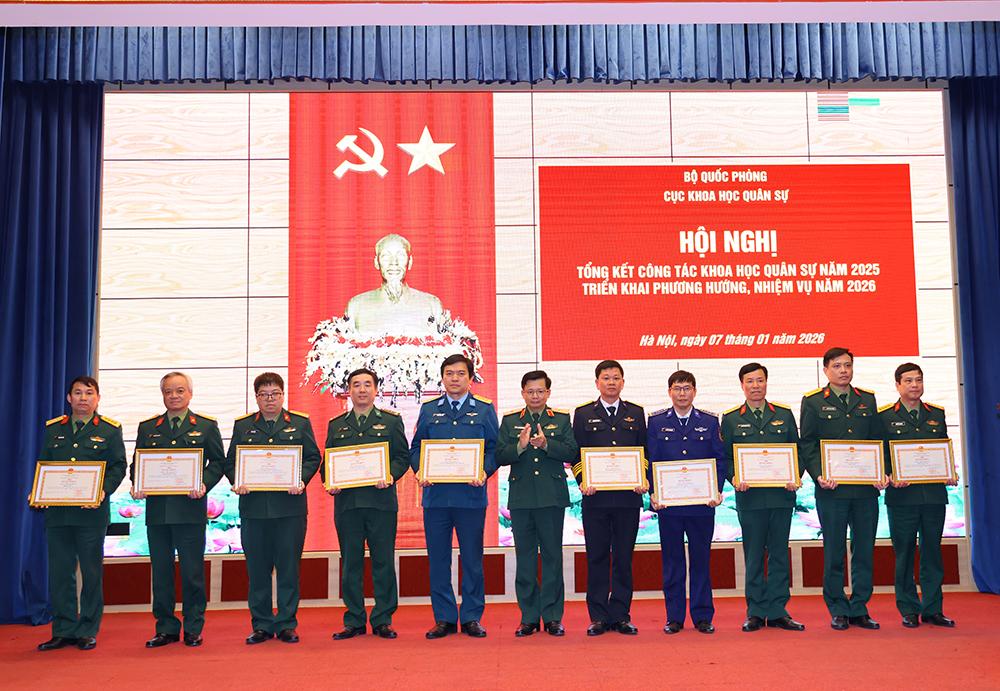 Tại hội nghị, Ban Tổ chức đã công bố quyết định và trao thưởng tặng các tập thể, cá nhân có thành tích xuất sắc trong công tác KHQS năm 2025.