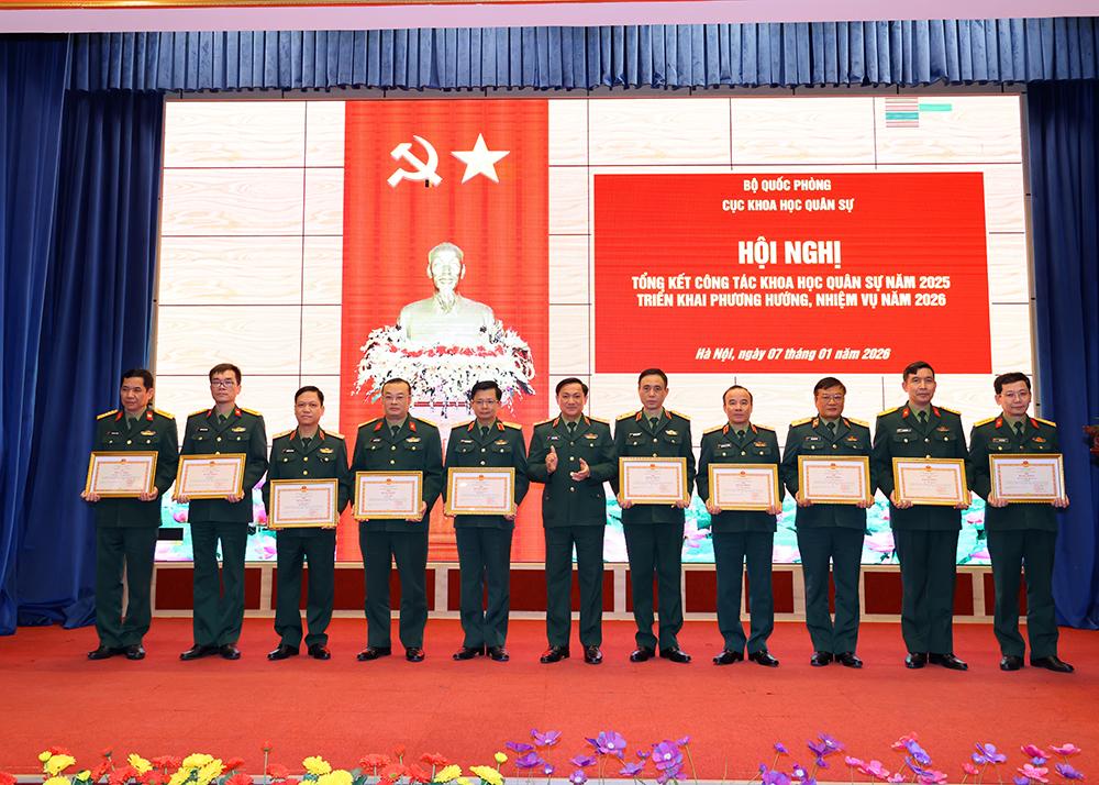 Năm 2025, công tác khoa học quân sự (KHQS) được triển khai đồng bộ, toàn diện và đạt nhiều kết quả quan trọng. Cục KHQS đã làm tốt chức năng tham mưu cho Quân ủy Trung ương, Bộ Quốc phòng hoạch định chủ trương, định hướng hoạt động KHQS toàn quân; nhất là tham mưu xây dựng các sản phẩm vũ khí, trang bị kỹ thuật có ý nghĩa chiến lược, dự án đầu tư tiềm lực và các dự án, nhiệm vụ chuyển đổi số. Tổ chức triển khai thực hiện nghiêm túc, kịp thời các kết luận, chỉ đạo của Thủ trưởng Bộ Quốc phòng, Thủ trưởng Bộ Tổng Tham mưu về công tác KHQS. Nhiều chương trình, đề án, nhiệm vụ khoa học - công nghệ trọng điểm được triển khai đúng tiến độ, bảo đảm chất lượng, phục vụ trực tiếp công tác lãnh đạo, chỉ huy và tổ chức lực lượng. Công tác quản lý và tổ chức nghiên cứu khoa học tiếp tục được tăng cường; việc xây dựng, phát triển tiềm lực khoa học - công nghệ được triển khai chủ động, có trọng tâm, trọng điểm. Trong năm, đã tổ chức đánh giá, nghiệm thu 24 đề tài, trong đó có 01 đề tài cấp quốc gia, với 23/24 đề tài đạt loại xuất sắc; đồng thời quản lý và triển khai 01 đề tài độc lập cấp quốc gia, 74 đề tài độc lập cấp Bộ Quốc phòng và 01 chương trình khoa học nghệ thuật quân sự cấp Bộ Quốc phòng.