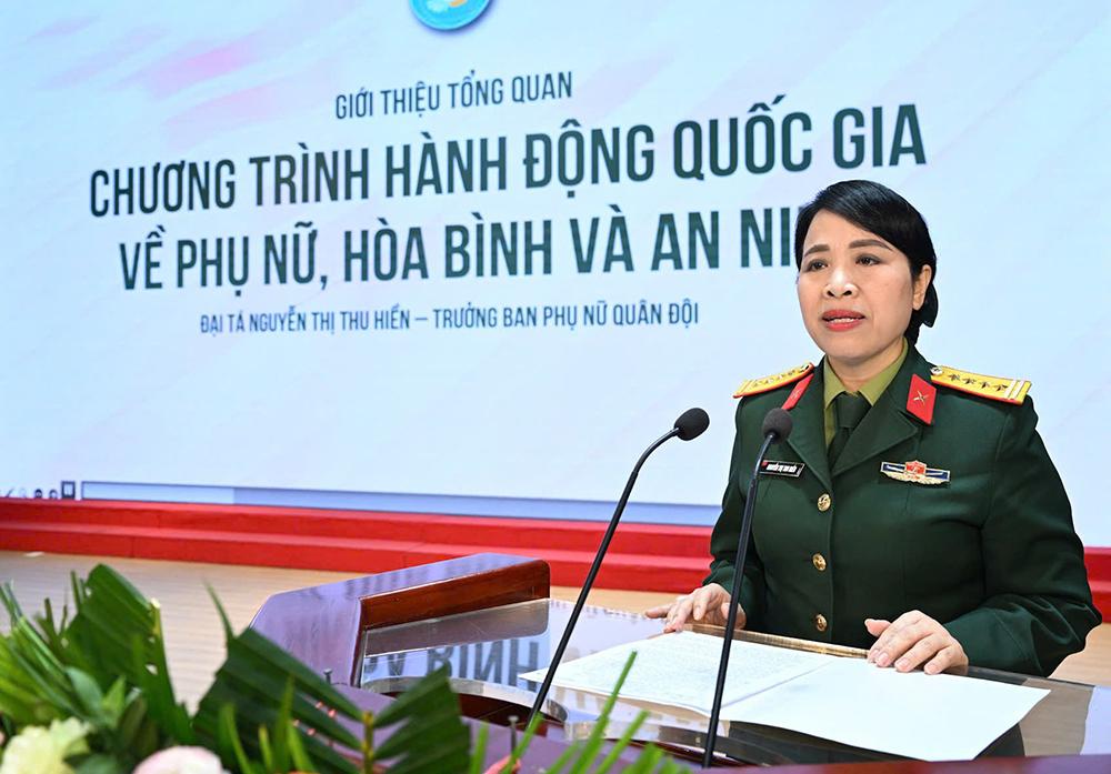 Đại tá Nguyễn Thị Thu Hiền giới thiệu tổng quan Chương trình hành động quốc gia về Phụ nữ, hòa bình và an ninh giai đoạn 2024 - 2030.