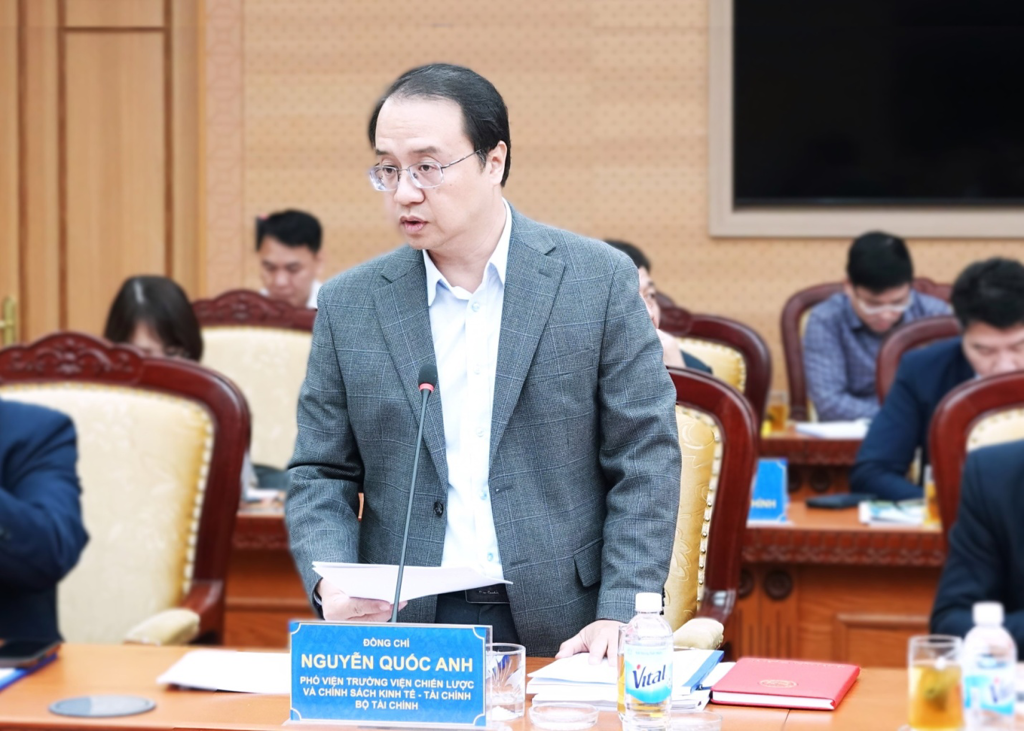 Phó Viện trưởng Viện Chiến lược và Chính sách kinh tế - tài chính Nguyễn Quốc Anh báo cáo tại buổi làm việc