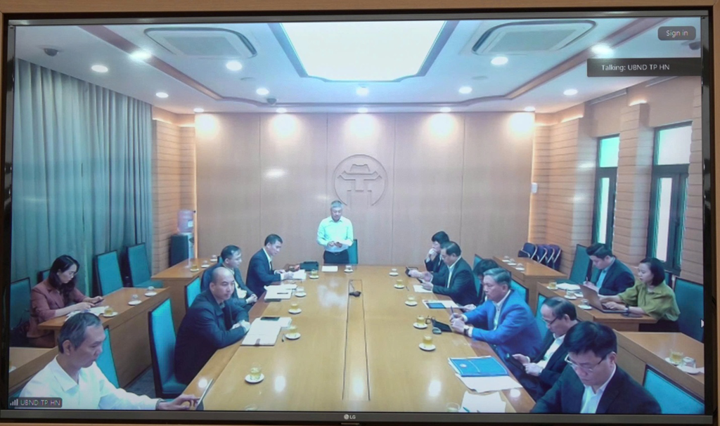 Đại diện Tp. Hà Nội góp ý kiến tại điểm cầu trực tuyến