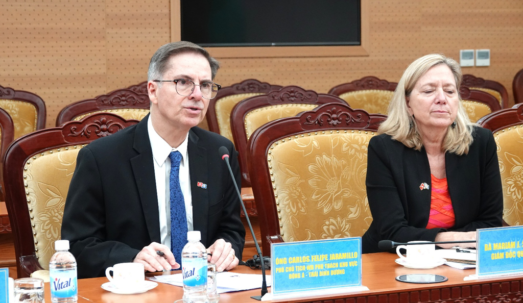 Mở đầu buổi làm việc, ông Carlos Felipe Jaramillo bày tỏ sự cảm thông trước những thiệt hại do thiên tai, bão lũ gần đây tại Việt Nam, đồng thời khẳng định WB mong muốn tiếp tục đồng hành trong các lĩnh vực then chốt như hạ tầng, năng lượng, ứng phó biến đổi khí hậu, nông nghiệp và chuyển đổi số. WB mong muốn được lắng nghe quan điểm của Bộ Tài chính về quy trình xây dựng danh mục dự án sử dụng vốn vay WB, các lĩnh vực ưu tiên của Chính phủ, cũng như đánh giá của Việt Nam đối với các công cụ vay mới như PBL, MPA và P4R.