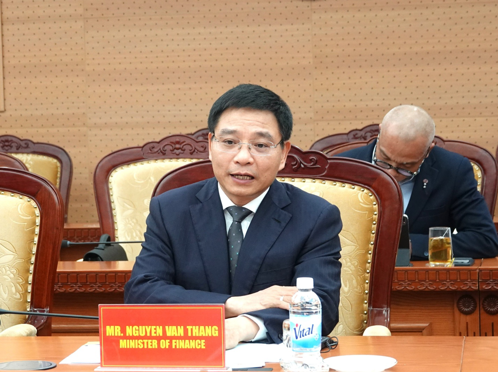 Bộ trưởng Nguyễn Văn Thắng trân trọng ghi nhận sự chia sẻ và hỗ trợ của WB, nhấn mạnh Việt Nam đang đứng trước nhu cầu lớn về huy động nguồn lực quốc tế để thúc đẩy tăng trưởng nhanh, bền vững trong giai đoạn 2026–2045. Bộ trưởng cho biết Bộ Tài chính thời gian qua đã phối hợp chặt chẽ với Văn phòng WB tại Việt Nam, tập trung hoàn thiện thể chế, cải cách mạnh mẽ nhằm rút ngắn thời gian từ đàm phán đến giải ngân các khoản vay ODA xuống còn 12–15 tháng. Đây là bước tiến quan trọng góp phần đẩy nhanh giải ngân đầu tư công. Trên cơ sở đó, Việt Nam xác định nhóm lĩnh vực ưu tiên hợp tác với WB gồm: hạ tầng và giao thông quy mô lớn, trong đó có tuyến đường sắt cao tốc Bắc – Nam; chuyển dịch năng lượng và năng lượng tái tạo; nông nghiệp bền vững; phát triển giao thông thủy và logistics Đồng bằng sông Cửu Long; hỗ trợ kinh tế tư nhân và đổi mới sáng tạo; cũng như tăng cường mô hình kinh tế xanh và kinh tế tuần hoàn để thích ứng biến đổi khí hậu. Bộ trưởng đánh giá cao việc WB chủ động xây dựng danh mục dự án tiềm năng giai đoạn 2026–2030 và đề nghị hai bên tiếp tục phối hợp chặt chẽ hoàn thiện Đề án ODA trung hạn.