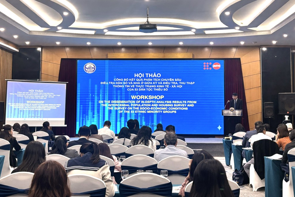 Ngày 23/12/2025, Cục Thống kê đã chủ trì, phối hợp với Quỹ Dân số Liên hợp quốc (UNFPA) tổ chức Hội thảo công bố các kết quả nghiên cứu chuyên sâu được xây dựng từ kết quả Điều tra dân số và nhà ở giữa kỳ và Điều tra thực trạng kinh tế-xã hội của 53 dân tộc thiểu số năm 2024.