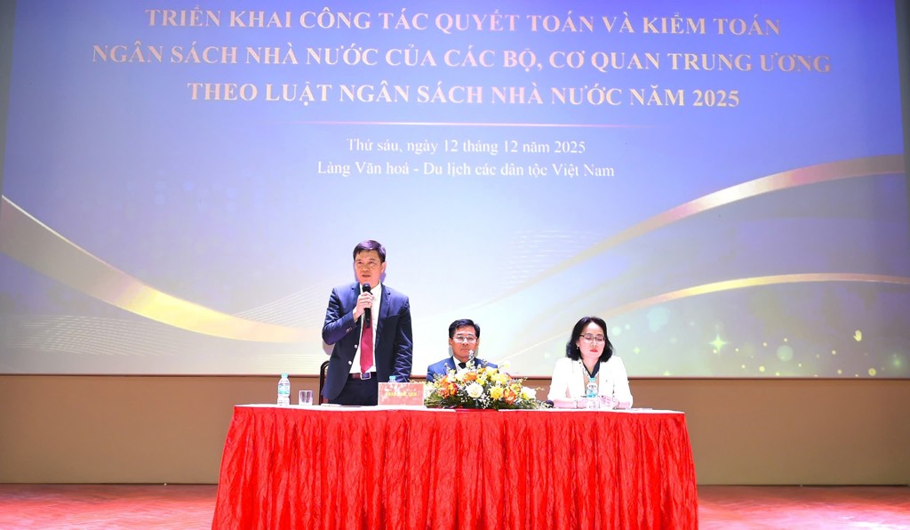 Ngày 12/12/2025, tại Làng Văn hóa – Du lịch các dân tộc Việt Nam, Bộ Tài chính phối hợp với Kiểm toán Nhà nước tổ chức Hội nghị Triển khai công tác quyết toán và kiểm toán ngân sách nhà nước của các Bộ, cơ quan trung ương theo Luật Ngân sách nhà nước năm 2025. Hội nghị thu hút sự quan tâm tham dự của 250 đại biểu đến từ Bộ Tài chính, Kiểm toán Nhà nước và các Bộ, cơ quan Trung ương.
