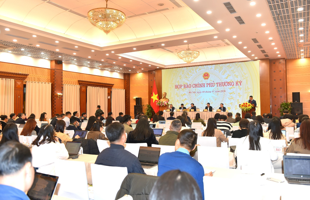 Chiều 8/1, Bộ trưởng, Chủ nhiệm Văn phòng Chính phủ Trần Văn Sơn đã chủ trì buổi Họp báo Chính phủ thường kỳ tháng 12/2025. Tham dự họp báo có đại diện các Bộ, ngành và đông đảo phóng viên các cơ quan thông tấn, báo chí. Thứ trưởng Bộ Tài chính Nguyễn Đức Chi tham dự Họp báo và trực tiếp trả lời câu hỏi của phóng viên về các giải pháp, động lực cho mục tiêu tăng trưởng hai con số trong năm 2026 và các năm tiếp theo.