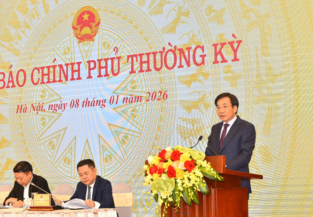Thông tin tại buổi họp báo, Bộ trưởng Trần Văn Sơn cho biết: Sáng 8/1, Chính phủ đã tổ chức Hội nghị trực tuyến toàn quốc tổng kết công tác năm 2025 và triển khai công tác năm 2026 của Chính phủ và chính quyền địa phương. Hội nghị vinh dự được đón các đồng chí lãnh đạo Đảng, Nhà nước đến dự, đặc biệt là đồng chí Tổng Bí thư Tô Lâm, Chủ tịch nước Lương Cường, Chủ tịch Quốc hội Trần Thanh Mẫn, Thường trực Ban Bí thư Trần Cẩm Tú; cùng lãnh đạo các ban, bộ, ngành Trung ương và địa phương.