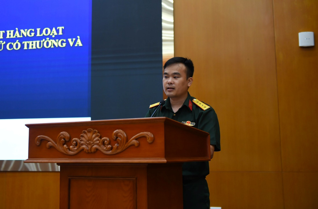 Đại úy Nguyễn Văn Vương – Chuyên gia cơ quan thường trực 81, Binh chủng hóa học, Bộ Quốc phòng thông tin về lĩnh vực tài trợ phổ biến vũ khí hủy diệt hàng loạt. Ảnh: Tuệ Anh